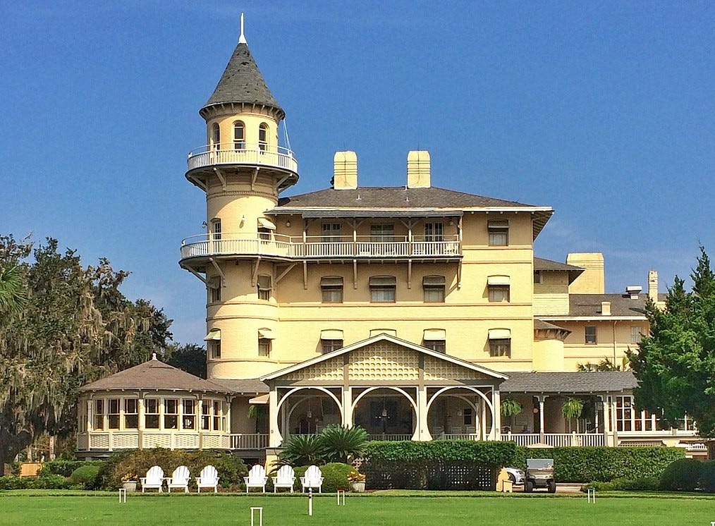 No better place to learn the history of trad jazz and ragtime than the Jekyll Island Club Resort, a Gilded Age splendor (Photo courtesy Wikimedia Commons, by Farrargirl, photo cropped to fit)