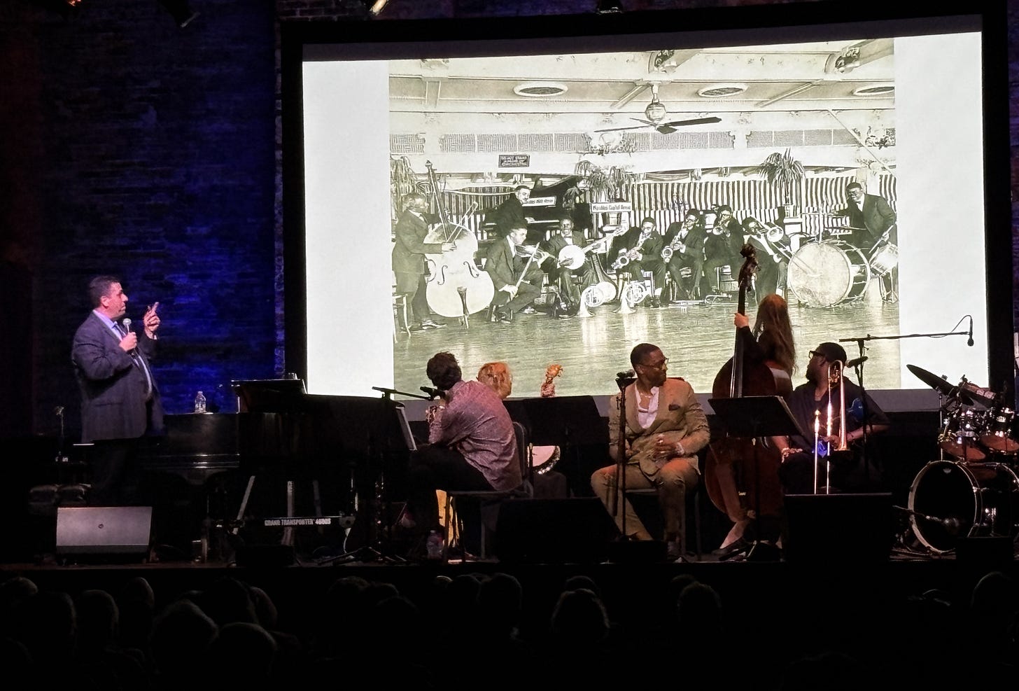 Ricky Riccardi, director of research collections at the Louis Armstrong House Museum, gave Bruce Harris and the band some time to rest their chops between songs with stories of Armstrong’s journey from New Orleans street kid to the world’s first true jazz ambassador. (8495Jazz photo)