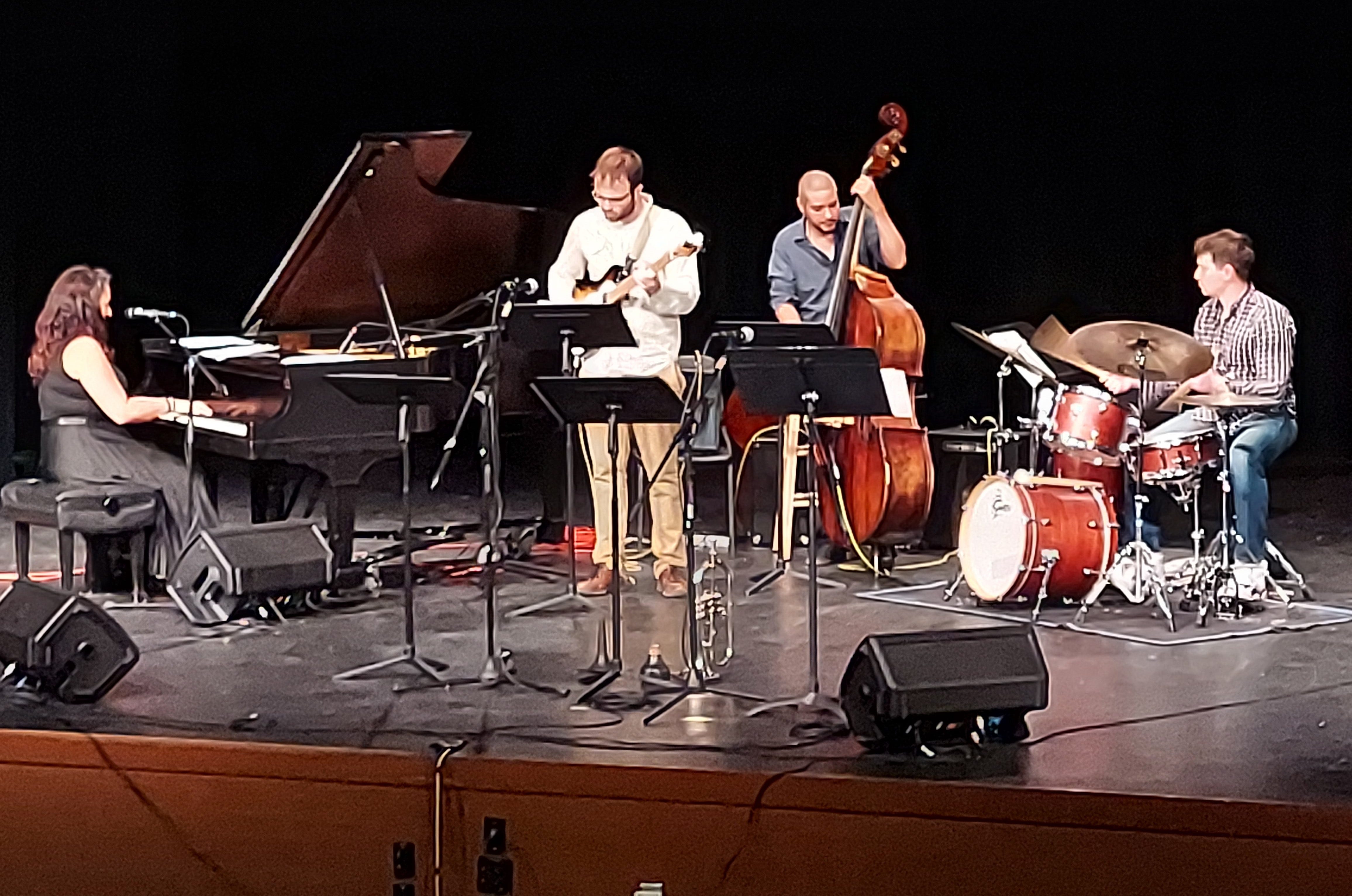 From the clubs to the campus…we next took a quick jaunt from 8495Jazz world headquarters to the Frederick Gunn School in Washington, CT, for the penultimate Litchfield Jazz Camp faculty concert, featuring camp alums and Grammy winners Nicole Zuraitis on piano and vocals and Luques Curtis on bass. Mike Godette is on guitar and Ian Carroll on drums. (8495Jazz photo)