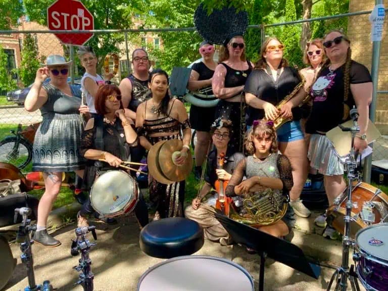 Brass bands from all over the country, including Chicago’s Clamor and Lace Noise Brigade, will make the streets of Somerville, MA a party with a purpose at the 20th HONK! festival, Thursday through Sunday (photo courtesy HONK!)