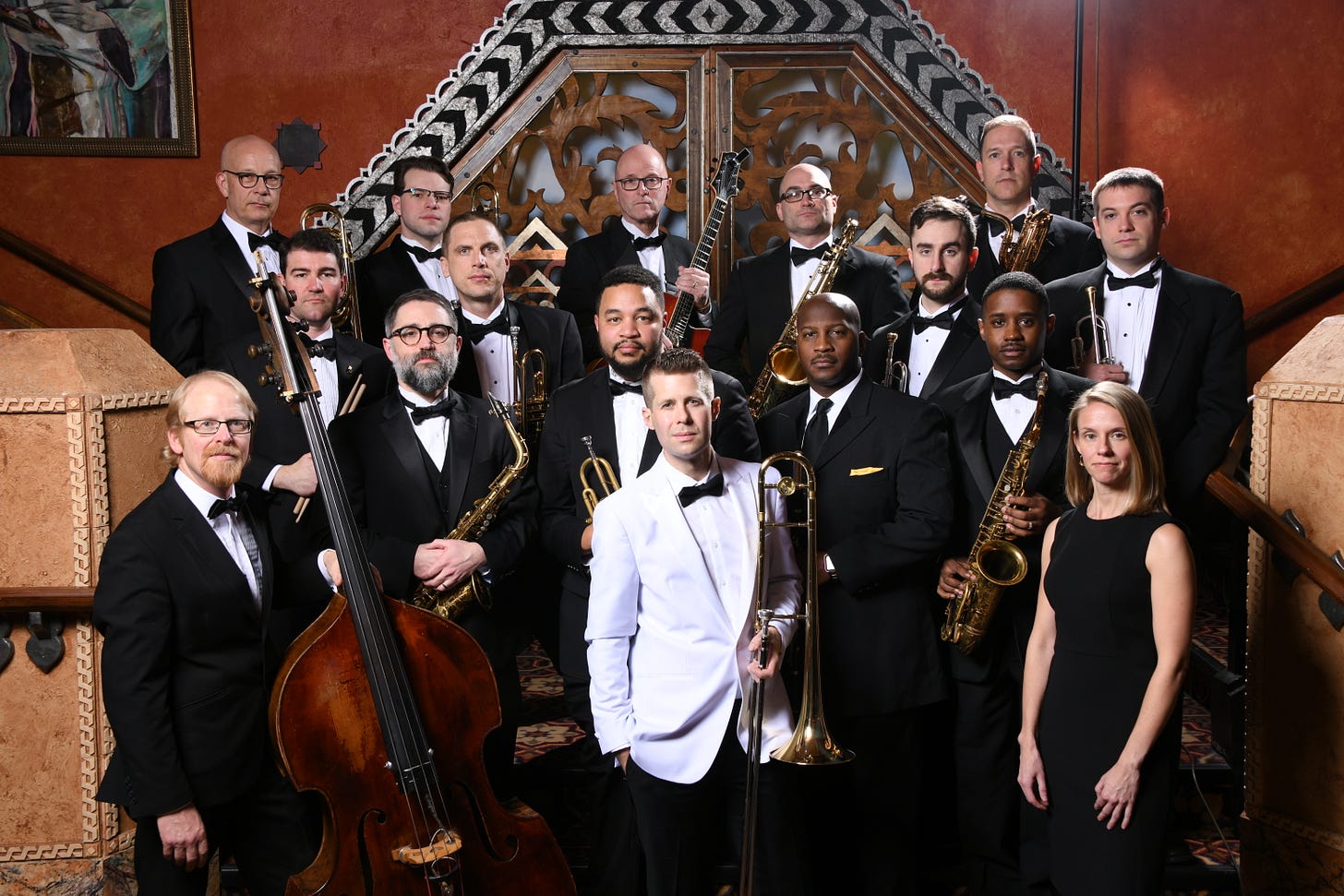 Sean Nelson, center front, with the New London Big Band (photo credit Vincent Scarano)